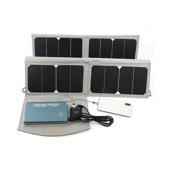 50W Solar Panel for Medistrom Pilot-12 Lite and Pilot-24 Lite Backup Power Supplies/ CPAP Batteries. Charge time will vary based on weather and amount of available sunlight. Please make sure to place the Solar Panel in direct sunlight for optimal charge times. To be used only for charging, not intended to be used in the backup power supply configuration.
