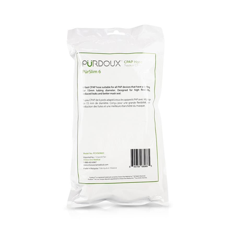 Pürdoux™ PürSlim 6-foot CPAP hose is suitable for all PAP devices that have a setting for 15mm tubing diameter. Designed for high flexibility, reduced leaks and better mask seal.